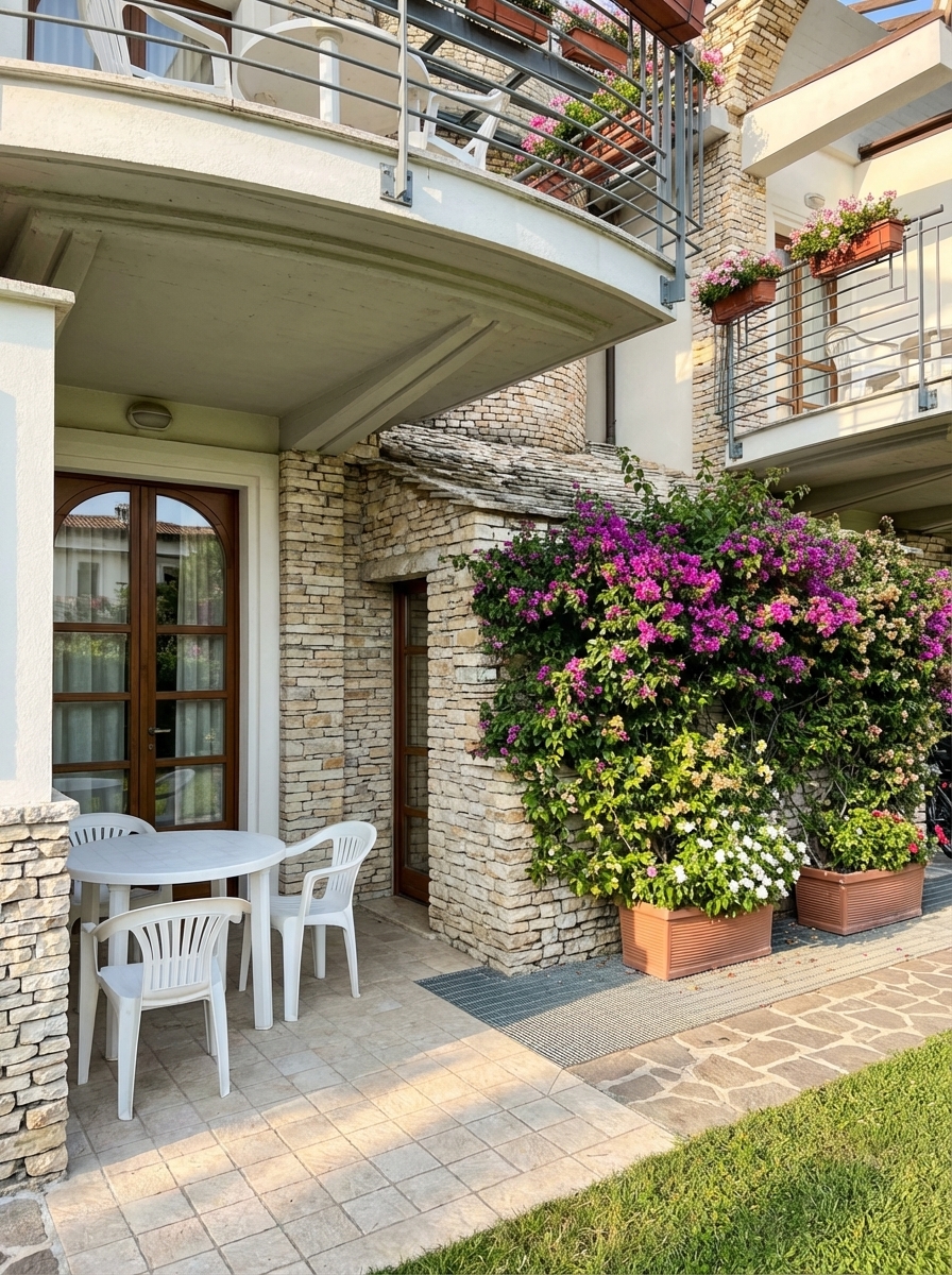All rooms offer a peaceful garden orientation and feature a private furnished outdoor space, such as a patio or balcony, depending on their location.